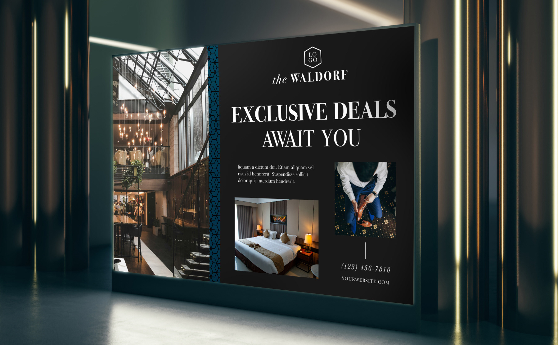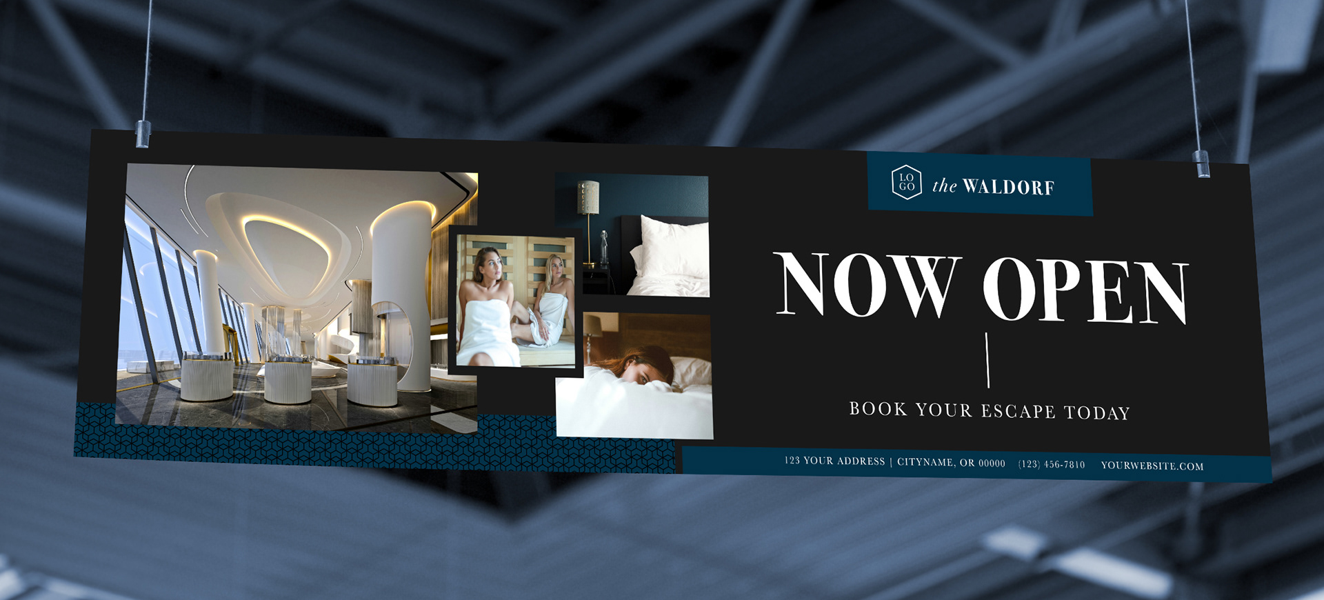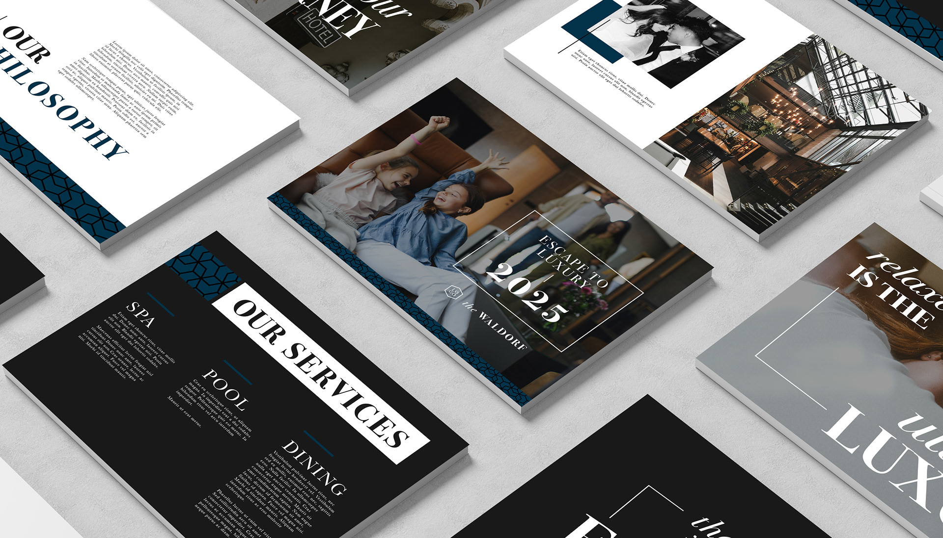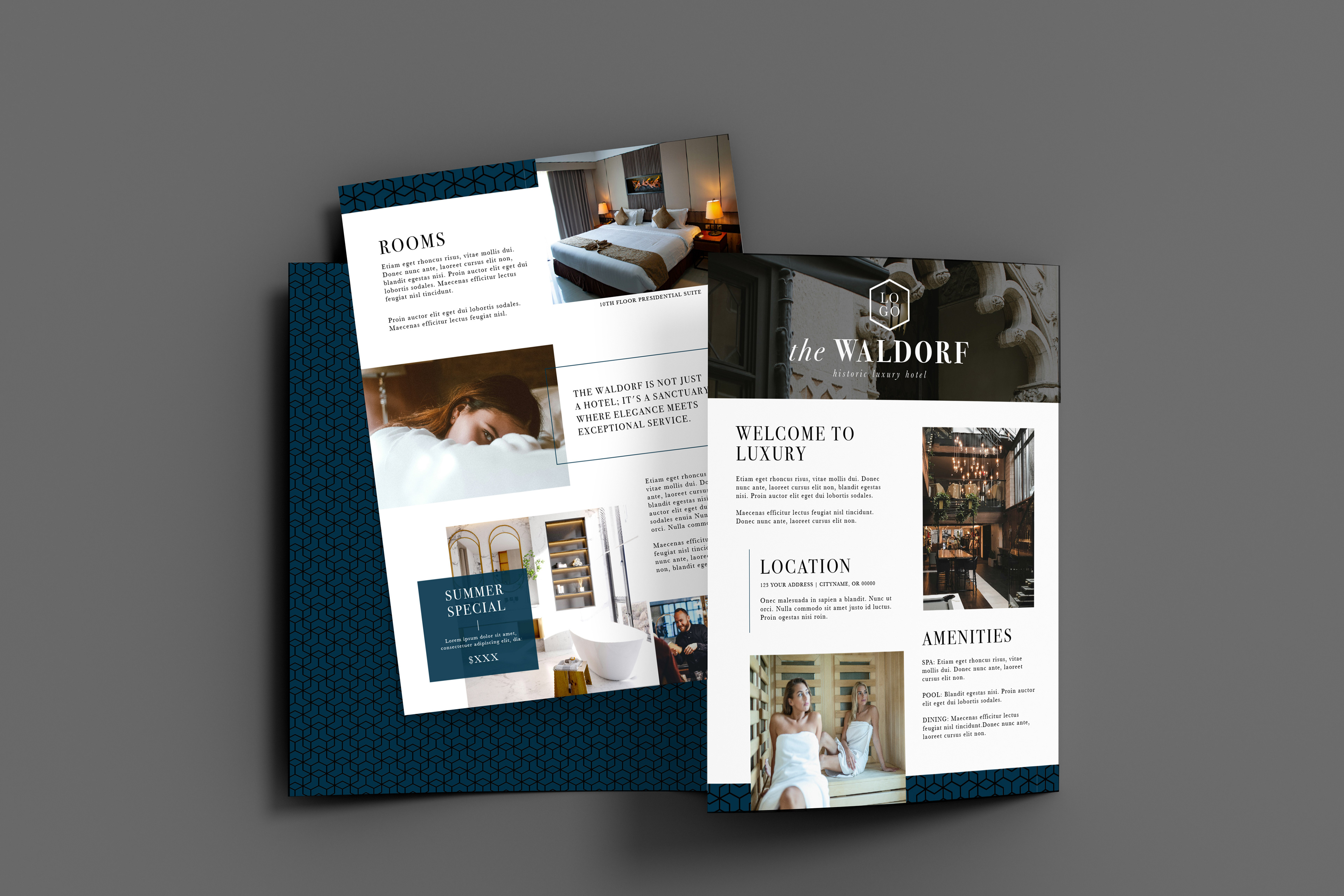 A collection of business templates made for photo retail partners. This set was designed to be fully customized by different businesses, and featured a luxury hotel as the subject.