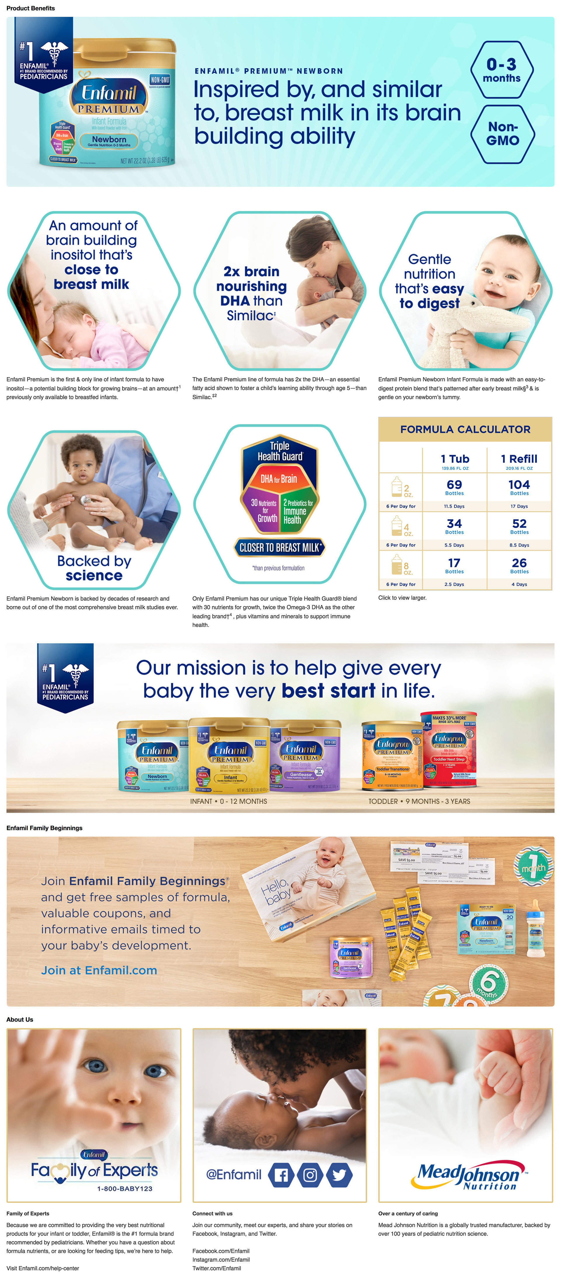 Most of Enfamil’s sales come from retailers like Target, Walmart, or Amazon. We were asked to develop below the fold content for Enfamil’s products that would show up in the “from the manufacturers” section . Our goal was to help increase sales by providing the consumer with more information on why they should choose Enfamil. We created a visual system that stayed consistent across all Enfamil products. Through adding visual interest, emotion through lifestyle photography, and providing relevant information, we created rich content that almost doubled conversions on third party retail platforms. Due to the content’s success, we were asked to reformat our content for Enfamil Canada and Enfamil Spain.