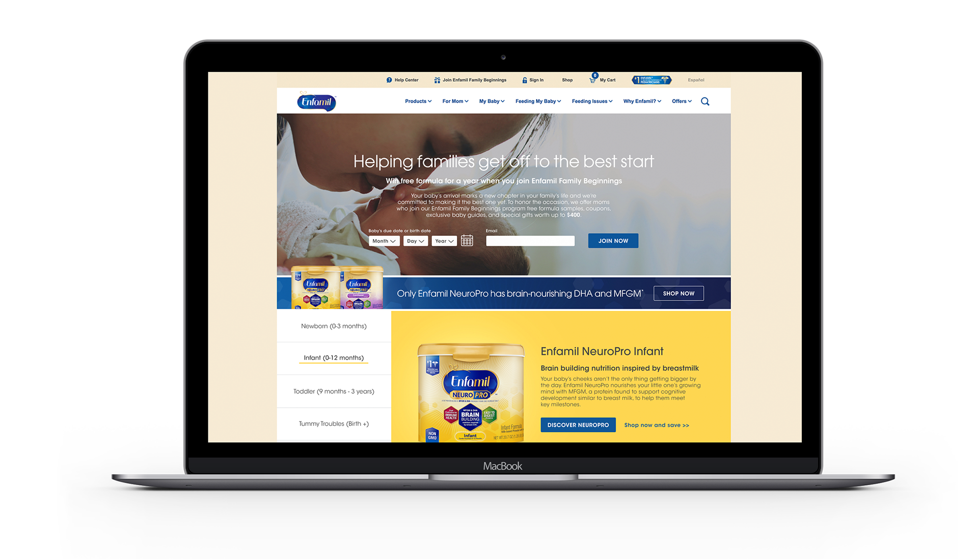 While at OKRP and Juice, I worked on the baby formula brand, Enfamil, primarily on their digital marketing strategy and e-commerce projects. Work included Enfamil's homepage redesign, redefining their motherhood milestone editorial content, and helping push their brand voice and visual identity. I enjoyed getting to work with Enfamil for 2.5 years and be able to see a somewhat stodgy become a bit more daring and relevant.