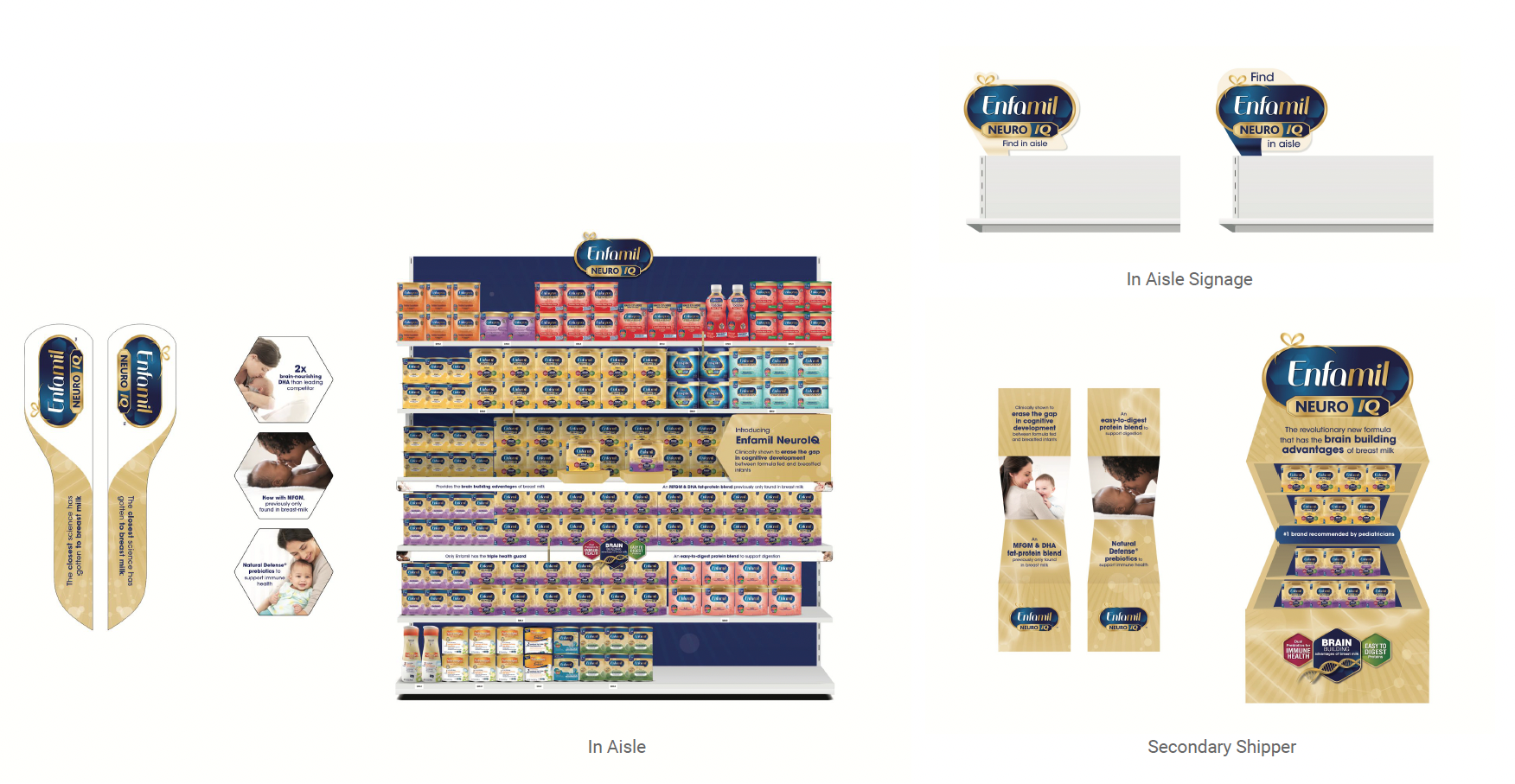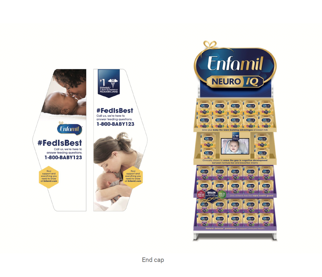 In store promotional displays for Target to support Enfamil’s launch of their revolutionary new formula, NeuroIQ, The displays included end cap, in aisle, in aisle signage, and secondary shippers.