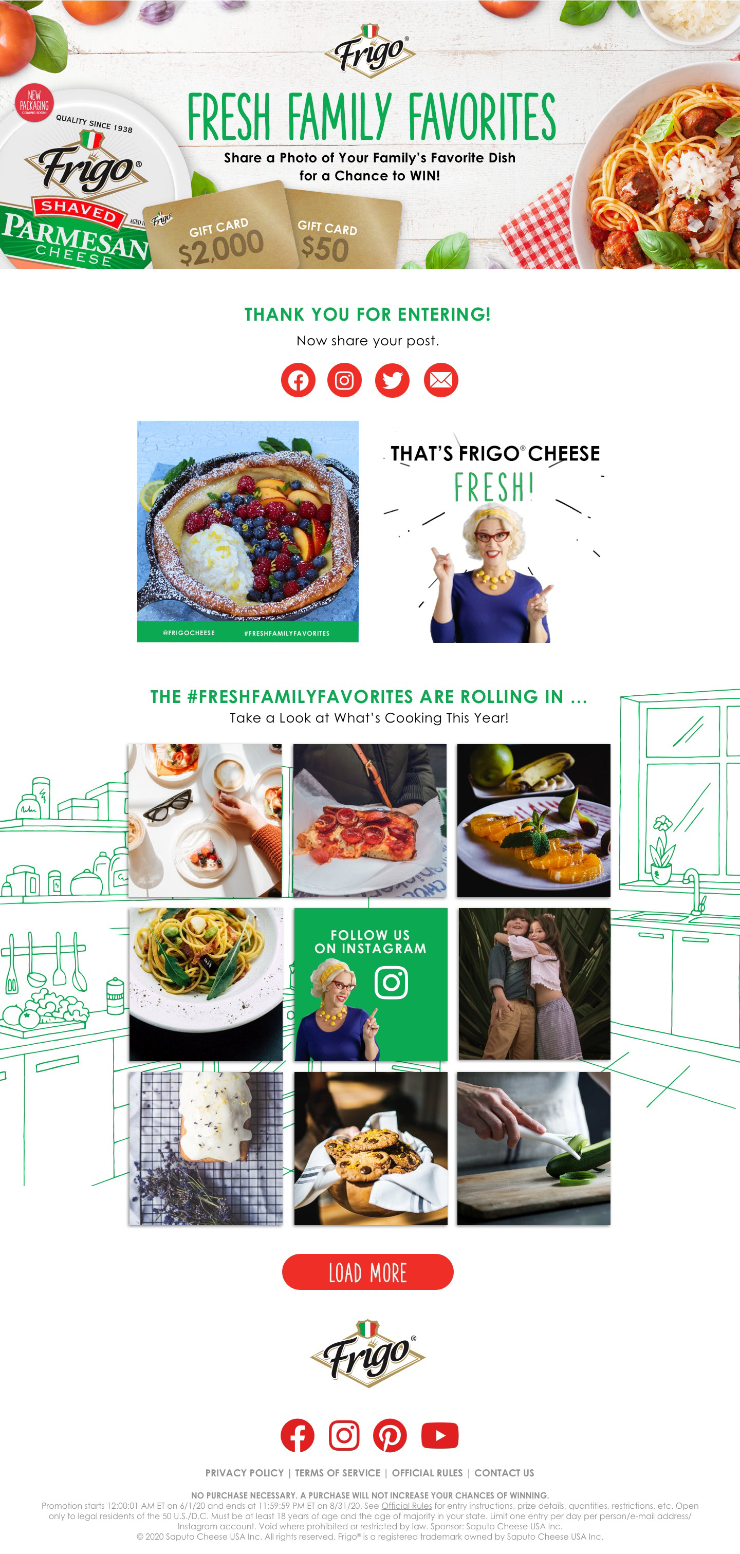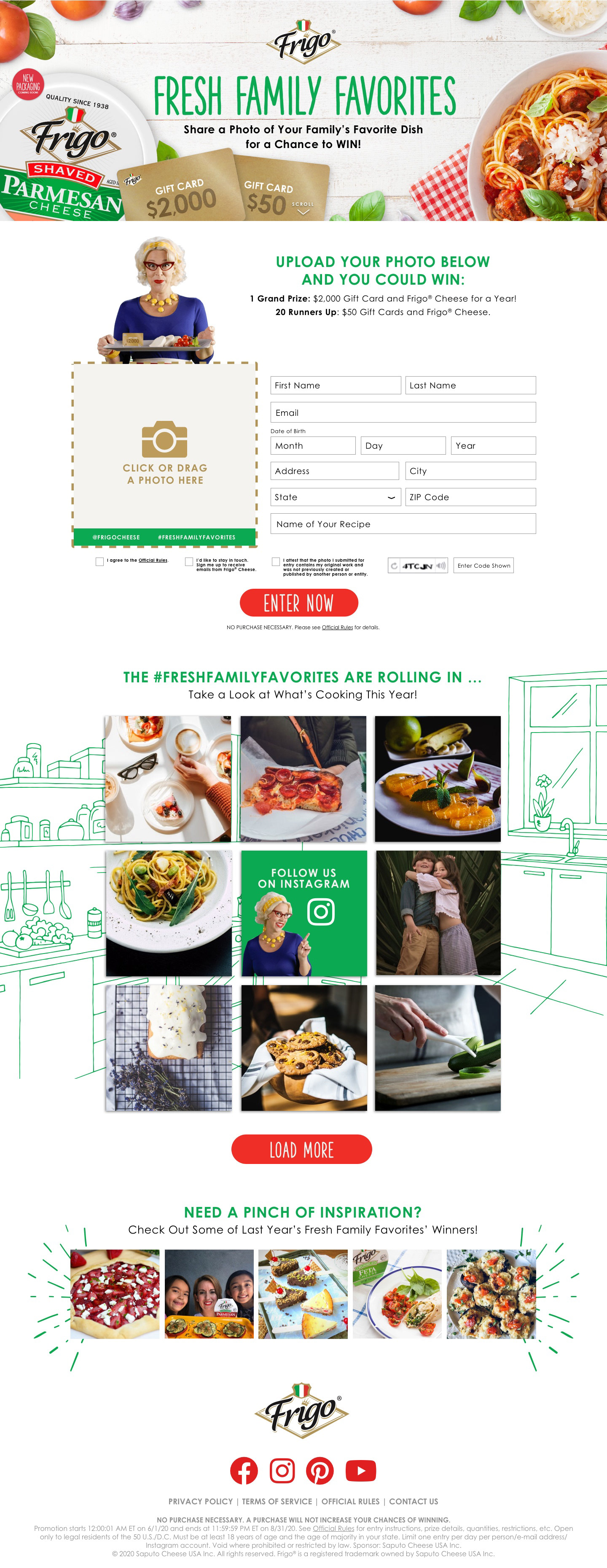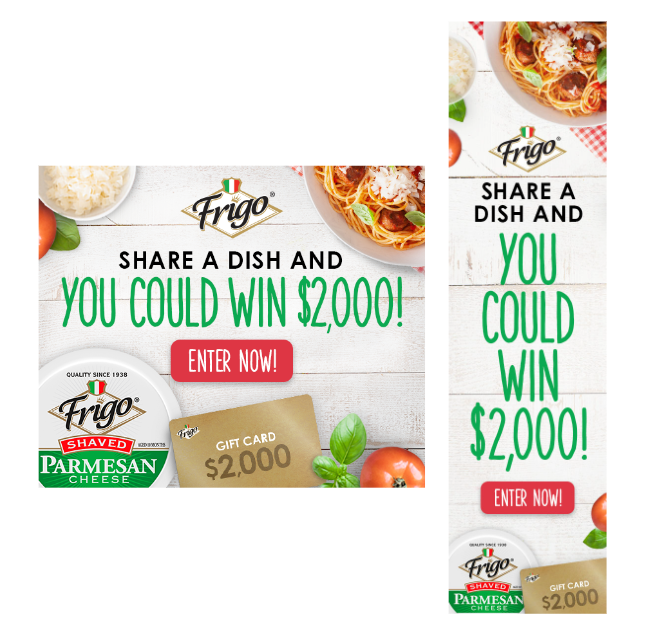 To boost brand awareness and encourage usage, we launched the Fresh Family Favorites recipe contest and asked Frigo® fans to share photos of their Frigo® cheese-inspired family recipes. Consumers could share their fresh family favorite dishes for a chance to Win a $2,000 gift card Grand Prize and Frigo® cheese for a year. 12,235 photos were entered by consumers on the website
