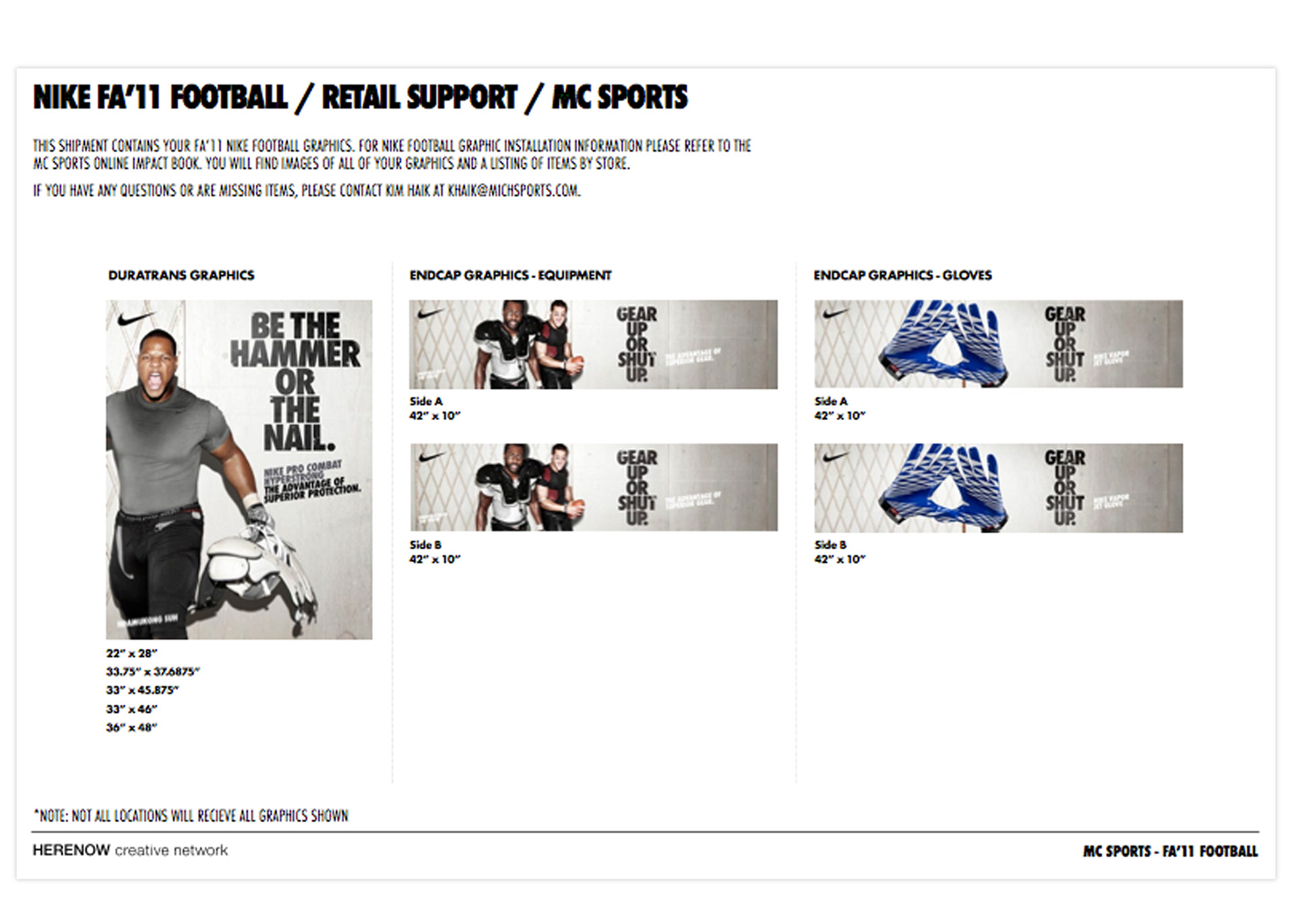Production work on window graphics, product directives, in store signage, and 3D environment mock ups I did while working with Herenow Creative for Nike.