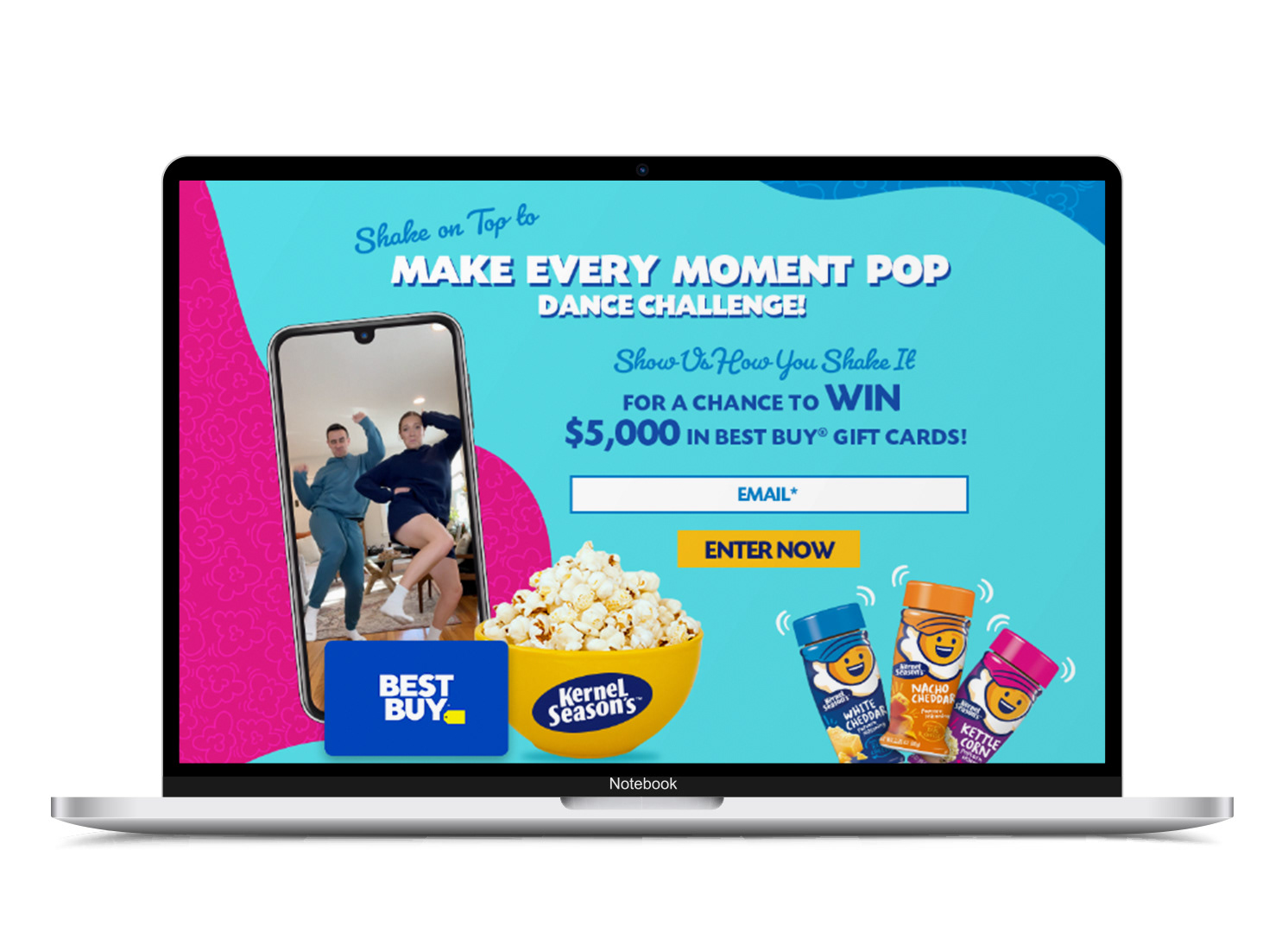 To drive brand awareness for Kernel Season’s delicious line of popcorn seasonings we decided to “shake things up” by challenging the audience to, well, “shake it!” Partnering with TikTok Influencers Cost ‘n Mayor, we created a fun dance challenge where consumers could enter to win big prizes like $5,000 in Best Buy Gift Cards and Kernel Season’s products!